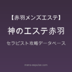 【赤羽】『神のエステ 赤羽店』セラピスト42名究極攻略データベース(26年3月版)